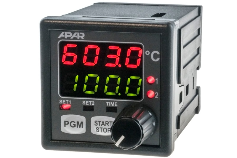 Control algorithms: ON-OFF with hysteresis, PID, PID autotuning, 6 segments process controller with timer
